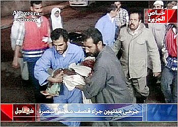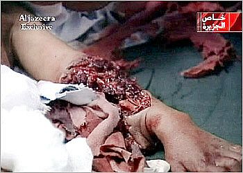 Ergebnisse der 'Operation Freiheit für den Irak' Aus der Seite www.aljazeerah.info/News%20Photos/Photos%20of%20Iraq%20war%20victims.htm Diese Seite ist seit dem 09.04.03 aus unerfindlichen Gründen (?) nicht mehr erreichbar. Beim Aufruf der Seite kommt die Meldung: "Unable to fetch Domain". Offensichtlich stören Kriegsbilder bei der Propaganda!