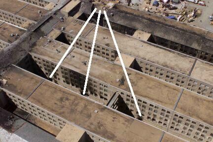 - Drei Gebäuderinge des Pentagon wurden an drei Stellen durchdrungen - die Austrittslöcher sind kreisrund. (S. 239 ff)