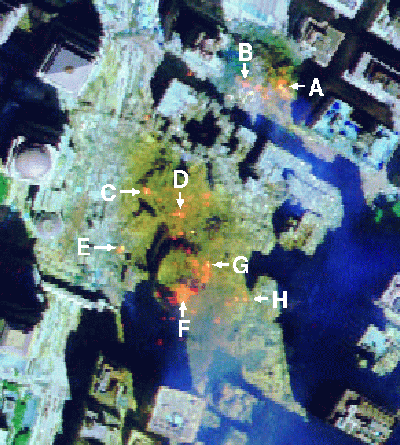 - Am 16.9.2001 (fünf Tage nach den Anschlägen) wird von der NASA eine Wärmebildaufnahme gemacht. Gemäß einer Veröffentlichung von 'US Geological Survey' (