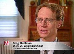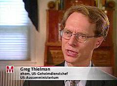 | Greg Thielman, bis September 2002 'Director of the strategic, proliferation and military affairs office in the State Department's bureau of intelligence and research', hier bei 'Monitor' als 'ehem. US-Geheimdienstchef, US-Außenministerium' tituliert, äußert sich wie folgt: