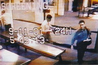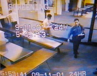 Also wohl rechts im Bild soll Mohammed Atta zu erkennen sein. Woher weiß der 'Spiegel' das? Haben die Spiegel-Autoren übersinnliche Fähigkeiten? Von wem haben sie diese Information? Aus dem Bild können sie die Identität nicht entnehmen, zumindest nicht mit der selbstverständlichen Sicherheit, mit der das hier geschieht. Auch eine höhrere Auflösung des Bildes wird keine wesentlich bessere Erkennbarkeit zur Folge haben, denn in der gedruckten Wiedergabe erkennt man bereits die Zeilenstruktur des Bildschirms.