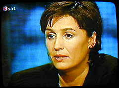 | Maischberger: "... ich hätte mich gefreut als Leser, wenn Sie mir einen von diesen sechs Lebendigen (Bild) gezeigt hätten... bzw.... weil Sie ja sagen, der eine arbeitet bei Air Maroc, der hat 'ne Adresse, der steht im Telefonbuch, den kann man anrufen und den interviewen. Warum haben Sie es nicht getan?" |