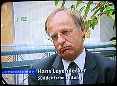 Anmerkung: Das, was Hans Leyendecker von der Süddeutschen Zeitung bisher von sich gegeben hat, als ein sich Befassen mit einem Thema zu bezeichnen, wirft ein bezeichnendes Licht auf 'Panorama'. Leyendeckers Äußerungen, die jedweder sachlicher Auseinandersetzung entbehren, sind offenbar das Vorbild für 'Panorama'. "Jetzt beschimpfen ihn Verschwörungstheoretiker als einen 'räudigen journalistischen Köter'", formuliert 'Panorama' und läßt damit aus der (willkommenen) Äußerung eines Einzelnen die Meinung aller Kritiker werden und denunziert sie in einem Atemzug als Verschwörungstheoretiker. |