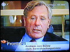| Vorgestern Abend im ZDF. Auch der Verschwörungstheoretiker Andreas von Bülow muss sich nun den Nachfragen anderer Journalisten stellen. Thema diesmal: der israelische Mossad als angeblicher Drahtzieher des Terrors.