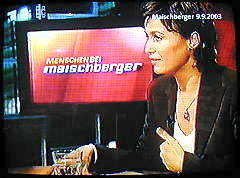 | O-Ton Sandra Maischberger: "Weil Ihr Buch 70.000 mal verkauft worden ist, finde ich schon - ich hätte mich gefreut als Leserin, wenn Sie mir einen von diesen sechs Lebendigen gezeigt hätten bzw., weil Sie ja sagen, der eine arbeitet bei Air Maroc, der hat eine Adresse, der steht im Telefonbuch, den kann man anrufen und den interviewen - warum haben Sie es nicht getan?"