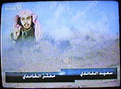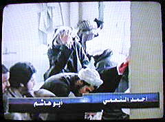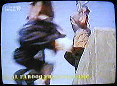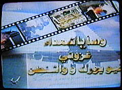 | Sprecherin: "... ein Unternehmen, das man im Londener Büro des arabischen Fernsehsenders gut kennt. Die Propagandaabteilung der Terror-AG läßt dem Sender regelmäßig Bilder zukommen."