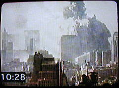 Übrigens gab es eine ähnliche Formulierung schon einmal, und zwar in dem vom Pentagon im Dezember 2001 veröffentlichten Video: "Sie waren außer sich vor Freude, als das erste Flugzeug das Gebäude traf. So sagte ich zu ihnen: Habt Geduld." Damals war das eine Äußerung von Osama bin Laden. Also bereits in diesem Pentagon-Video war die Rede vom Miterleben des ersten Anschlags. Eigenartig! |