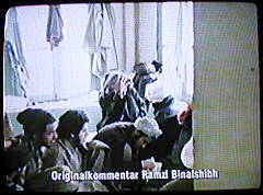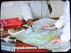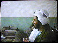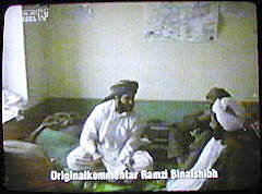 | Sprecherin: "Was vermuten läßt, daß diese Bilder erst nach dem 11. September entstanden und unter Binalshibhs Regie mit Originalutensilien nachgestellt wurden." |