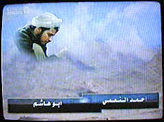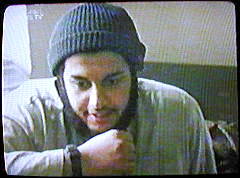 Anmerkung: Spiegel-TV rühmt sich also, die Aufnahmen erstmals zu zeigen. Abgesehen von der Frage nach der Glaubwürdigkeit des Videos, ist diese Behauptung schlicht falsch. "Am 9. September [2002] sendete al-Dschasira eine gekürzte Version des Bandes", lesen wir im Buch 'Masterminds of Terror', dessen einer von zwei Autoren Yosri Fouda ist, der in diesem Spiegel-TV-Beitrag noch mehrfach eine zentrale Rolle spielen wird. Also ist mehr als ein Jahr seit der Erstausstrahlung durch al-Dschasira vergangen. Daß mit dem am 9.9.2002 gesendeten Video tatsächlich dasjenige gemeint ist, das jetzt von Spiegel-TV als Neuheit angepriesen wird, ergibt sich aus der Beschreibung im Buch 'Masterminds of Terror' (S. 180), die sich weitgehend mit dem deckt, was wir im Spiegel-TV-Beitrag noch vorgeführt bekommen: