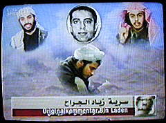 | Sprecher, der laut Einblendung angeblich einen Text von Bin Laden liest: "Man kann nicht genug von diesen Männern reden. und das Wort kann nicht genug von ihren gesegneten Taten und deren Wirkungen erzählen. Dennoch werden wir versuchen, sie zu würdigen."