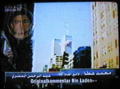 | Sprecherin: "Jede einzelne Entführergruppe wird von bin Laden metaphernreich gewürdigt. Nach der zweiten Gruppe sind dann die Gegner im Bild zu sehen..."