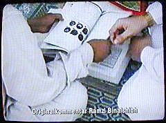 Anmerkung: Aber Yosri Fouda legt eine Videokassette ein. Das irritiert. Trotzdem: es ist denkbar, daß mit der Tonaufnahme ein Video entstanden ist. Denn Fouda hat mit dem Interview für al-Dschasira eine Sendung produziert, die kurz vor dem 11.9.2002 ausgestrahlt wurde.