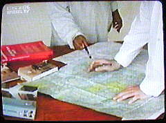 | Anmerkung: Dieses und die beiden folgenden Bilder sollen anscheinend zeigen, wie die 'Terroristen' Landkarten und Flugzeugbeschreibungen studieren. |