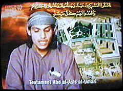 | Sprecherin: "Al-Umari hinterließ ein Videotestament, aufgezeichnet vor einer Leinwand, in die man später das Pentagon-Foto projizierte."