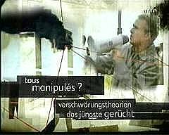 | Daniel Leconte spricht über etwas, was er Verschwörungstheorien nennt. Neu seien "die Mittel, mit denen solche Theorien heute verbreitet werden, und das Ausmaß dieser Manipulationsversuche. Wie schaffen es diese Leute, Millionen von Menschen plötzlich daran zweifeln zu lassen, daß die wahren Urheber der Anschläge vom 11. September wirklich bekannt sind... Wer hat ein Interesse daran, solche Phantastereien zu verbreiten, die ja alle eines gemein haben, sie sähen Zweifel daran, daß in unseren demokratischen Gesellschaften alles mit rechten Dingen zugeht..."