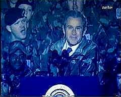 Die Äußerungen Thierry Meyssans werden mit einer rückwärts ablaufenden Szene, die George W. Bush rückwärts gehend erscheinen läßt, gewissermaßen kommentiert. Weiter Thierry Meyssan: