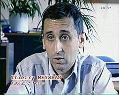 | Über Thierry Meyssan hören wir: "Der 11. September hat also wenigstens einen glücklich gemacht. Thierry Meyssan ist heute steinreich. Sein Glück verdankt er einer unglaublichen These, kein Flugzeug sei über dem Pentagon abgestürzt..." |