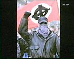 | 'arte' zeigt Symbole, die einer website von Pierre Krebs entnommen sind. Pierre Krebs sei Vorsitzender des Thule-Seminars, eines rechtsextremistischen Geheimbunds. |