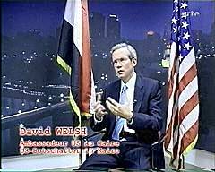 Im Laufe des Gesprächs mit Thierry Meyssan wird auch dessen Präsentation im Internet thematisiert, eine website die zeitweise 85.000 Besucher pro Tag verzeichnete und damit zur erfolgreichsten Internet-Seite des Jahres geworden sei. Erwähnt wird das so genannte Spiel der sieben Irrtümer, in dem der Anschlag auf das Pentagon kritisch beleuchtet wird. Dazwischen geschnitten wird eine kurze Einstellung Thierry Meyssans mit den beiden Worten "Sehr dubios", als würde er damit selbst die Zweifelhaftigkeit seiner Darstellung zum Ausdruck bringen wollen. |