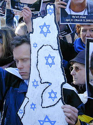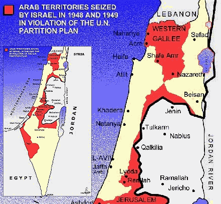 "Bei einem Treffen des Kabinetts im Juni 1948, bei dem über den Umgang mit der palästinensischen Bevölkerung diskutiert werden sollte, beschrieb der israelische Außenminister Moshe Sharett den palästinensischen Exodus als 'ein gewaltiges Ereignis der Weltgeschichte und der jüdischen Geschichte. Sie werden nicht zurückkehren, so ist unsere Politik.' Ben Gurions [erster Ministerpräsident Israels] Haltung war genauso hart. Er sagte: 'Sie haben verloren und sind geflohen. Ihre Rückkehr muss nun verhindert werden. Und ich werde ihre Rückkehr auch nach dem Krieg verhindern.'" (Jean Shaoul, World Socialist Web Site, 26.1.2001) Der Mauerbau in Palästina Am 9.12.2003 meldet tagesschau.de: "Die UN-Vollversammlung hat eine Resolution verabschiedet, wonach sich der Internationale Gerichtshof mit dem Bau der israelischen Sperranlage befassen soll. Das Haager Gericht wird darin aufgefordert, die Rechtmäßigkeit des Baus zu überprüfen und sich zu den möglichen Konsequenzen zu äußern. Israel verurteilte die Resolution mit scharfen Worten. Es könne nicht angehen, 'dass ein Staat, der seine Bürger vor wilden Tieren schützt, vor Gericht gestellt werden soll", sagte Finanzminister Benjamin Netanjahu. Die Entscheidung sei verdreht. Das israelische Außenministerium warf den Palästinensern die 'zynische Ausnutzung' der Versammlung vor, 'um den Interessen von Terror-Sympathisanten zu dienen'." "Am [23.2.2004] beginnt vor dem Internationalen Gerichtshof in Den Haag eine Anhörung zum Bau der Sperranlage, die Israel derzeit auf besetztem palästinenischem Gebiet errichtet. Der Gerichtshof befaßt sich auf Bitte der UN-Vollversammlung mit dem Thema. Die bislang errichteten rund 200 Kilometer Sperranlagen im Westjordanland - teilweise eine über acht Meter hohe Betonmauer, teilweise ein massiver Stahlzaun - dringen tief in palästinensisches Gebiet ein, angeblich, um dort errichtete illegale jüdische Siedlungen zu schützen. Insgesamt soll die Sperranlage rund 740 Kilometer lang werden, fast doppelt so lang wie die sogenannte Grüne Linie, die zwischen dem 1949 eroberten israelischen Staatsgebiet und den palästinesischen Gebieten verläuft." ('junge Welt', 23.2.2004)