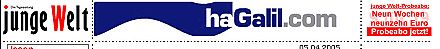 Wir suchen bei haGalil nach einigen ausgewählten Begriffen: 'Sicherheitszaun' finden wir deutlich häufiger als 'Stop the wall', die Intiative, die sich gegen den Bau der gigantischen Grenzanlage im Westjordanland wendet. Den Israeli und gleichzeitigen Israel-Kritiker 'Moshe Zuckerman' finden wir, aber eher mit Beiträgen, die zu ihm auf Distanz gehen. 'Julia Deeg' und 'Ellen Diederich', beides Kritikerinnen der israelischen Politik gegenüber den Palästinensern, finden wir kein einziges Mal. Häufig dagegen finden wir 'Matthias Küntzel', vielfach mit kompletten Artikeln dieses der anti-deutschen Szene zuzurechnenden Autors (im Juni 2004 sprach er anläßlich der internationalen Konferenz 'Stop the wall' bei der von den Anti-Deutschen organisierten Gegenveranstaltung). Und die der 'anti-deutschen' Szene nahestehende Wochenzeitung 'Jungle World' erscheint mehr als hundert mal - darunter eine Vielzahl in vollem Umfang wiedergegebene Artikel. haGalil - Galiläa Monitor erläutert: "HaGalil, das steht sowohl für Galiläa, das gewellte Land, als auch für den Begriff der Welle. Und wer will, soll sich selbst sein Bild machen." Das wollen wir tun: Galiläa ist der Teil im Norden Palästinas, der gemäß UN-Resolution 181 von 1947 nur zum Teil zum israelischen Staat gehören sollte, und den sich Israel im Rahmen des Krieges von 1948/49 mit Gewalt einverleibt hat. Eine Erklärung des Bundesausschusses Friedensratschlag beschreibt die damalige Situation:"...Im Verlauf der militärischen Auseinandersetzungen der Jahre 1948/49 hat Israel sein Staatsgebiet über die Grenzen des UN-Teilungsplanes hinaus ausgedehnt." Es "umfasste nunmehr 78 Prozent des Territoriums. Mit dieser Ausdehnung ging die systematische Vertreibung der arabischen Bevölkerung einher, während des Krieges wurden etwa 750.000 Palästinenser entwurzelt... Während die Israelis den Krieg von 1948/49 bis heute als 'Unabhängigkeitskrieg' feiern, wurden die Folgen des Kriegs von den Palästinensern verständlicherweise nur als 'Katastrophe' (Al-Nakba) empfunden."