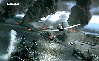Auch in anderer Hinsicht ist der Film - so weist Peter Bürger nach - eine grobe Geschichtsfälschung. Der Film beschränkt sich hinsichtlich der Reaktion auf 'Peral Harbor' auf die Schilderung eines als Racheakt deklarierten Einsatzes, bei dem die US-Luftwaffe am 2. April 1942 einen Angriff auf Tokio fliegt, der angeblich nur Fabriken zum Ziel hatte - »Die Fabriken, nur die Fabriken!« - und spart alles Andere, was die USA mit 'Pearl Harbor' legitimieren wollen, aus: