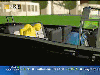 Nein, im Ernst: diese Darstellung ist eine Frechheit. Hier werden die Betrachter in plumpester Weise für dumm verkauft. Nichts von dem, was diese Szenen angeblich belegen sollen, ist nachvollziehbar mit diesem primitiven Schießbudenaufbau ohne jedes wissenschaftiche Bezugssystem. Der Normal-Fernsehzuschauer allerdings hat kaum eine Chance, diese Irreführung zu erkennen. Dabei gäbe die heutige Technik es spielend her, in einer extremen Zeitlupenaufnahme zu zeigen, was genau passiert. Aber nichts dergleichen! Kaum ist der Irrsinn formuliert, ist die relativ kurze Szene auch schon vorbei, und wir sehen die folgende Animation: