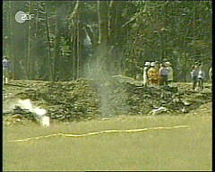 Wir sehen einen Krater ohne nennenswerte Trümmer. Die Aufnahmen sind ein Indiz dafür, daß es sich nicht um einen Flugzeugabsturz gehandelt hat. Es sieht ganz nach einem Bombenabwurf aus. Und auch der Rauchpilz weist auf einen Bombenabwurf hin.