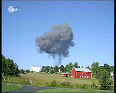 Damit wird sehr deutlich: es war kein Passagierflugzeug. Es muß ein Geschoss mit einem hellen Raketenschweif gewesen sein, das ins Pentagon eingeschlagen ist. In diesem Fall liefert das 'Protokoll des Grauens' nichts als Desinformation. Und es bedarf über den Film hinausgehenden Bildmaterials, um die Desinformation als solche zu entlarven. Der Krater von Shanksville Das 'Protokoll des Grauens' zeigt einen Krater und einen Rauchpilz. Bilder, die in irgendeiner Weise auf einen Flugzeugabsturz hindeuten - der durch den Kampf der Passagiere mit den 'Terroristen' in der United-Airlines-Maschine Flug 93 herbeigeführt worden sein soll - sehen wir nicht.