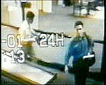 Damit soll uns offensichtlich die besondere Heimtücke der 'Terroristen' deutlicht gemacht werden. Aber dieser Hinweis ist - wenn wir uns der emotional aufpeitschenden Stimmung entziehen, die der Film verbreitet - ein Hinweis auf eine der vielen Unstimmigkeiten. Vielleicht ließe sich einwenden: die 'Terroristen' können ihre Sackos bei der Kontrolle (zum separaten Durchleuchten) abgelegt haben. Aber daß sie auch die Krawatte abgelegt haben, ist höchst unwahrscheinlich. Wir erkennen: Entweder ist die Aussage des Beamten ein Phantasieprodukt, oder die Behauptung, auf den Bildern der Sicherheitskamera seien zwei der 'Terroristen' zu sehen, die am Anschlag auf den Nordturm des WTC beteiligt gewesen sein sollen, ist ein Märchen. Identifizierbar ist auf dem Bild jedenfalls keine der zu sehenden Personen.