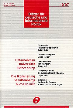 Wenn die Autorin des Blätter-Artikels auch immer wieder ohne die gebührende Distanz auf Quellen und Aussagen zurückgreift, so erkennt sie doch, "dass ehemalige führende Terroristen, insbesondere wenn sie der Zusammenarbeit mit Geheimdiensten verdächtigt werden, weder die ganze Wahrheit noch ausschließlich Wahrheiten von sich geben, und dass Geheimdienste Desinformationen herausschicken, dafür sogar eigene Abteilungen unterhalten." Auch wenn Regine Igel dieser Erkenntnis zuwider handelt, ist ihr doch zugute zu halten, daß sie diesen Satz so formuliert. Mit folgenden Statements schließt Regine Igel ihre Betrachtungen: "Wer heute wirklich um Aufklärung bemüht den Terrorismus aufarbeitet, stößt dabei immer wieder auf massive Mauern des Schweigens. Das liegt in der Natur der Sache, hat man es hier doch auf beiden Seiten mit Geheimorganisationen zu tun - seien es die Terroristen, seien es die 'Verfassungsschützer'. [...] Die Förderung des Terrorismus der 70er und 80er Jahre durch Geheimdienste bleibt ein Tabu. [...] Wenn staatliche Institutionen selbst in illegale Geschehnisse verwickelt sind, ist der politische Aufklärungswille natürlich gering. Zumal sich hinter dem 'Top Secret' der Geheimdienste nicht selten Dinge verbergen, die allen Grundprinzipien der parlamentarischen Demokratie entgegenstehen. Dass die weisungsgebundene Justiz wenig tut, um dieses aufzudecken, ist verständlich. [...] Das Thema RAF ist auch in dieser Hinsicht alles andere als ein Ruhmesblatt - und lange noch nicht abgeschlossen." Damit dürfte sie recht haben. Devise: mehr Demokratie verhindern Und wenn wir in Regine Igels Satz "Der Osten bezweckte über die Stärkung des Terrorismus generell die Schwächung der westlichen Demokratien" darüber hinwegsehen, daß sie den Begriff 'der Osten' verwendet und ihn durch den Begriff 'der Westen' ersetzen, dann vermittelt dieser Satz eine ganz wesentliche Erkenntnis: der Terror ist für den 'Westen' ein Mittel, um den Weg zu echter Demokratie zu torpedieren, ganz im Gegenteil autoritäre, polizeistaatliche Strukturen zu etablieren und dafür zu sorgen, daß die so genannten 'westlichen Demokratien' demokratische Scheinkulissen bleiben, hinter denen die wirklichen Machthaber unbehelligt ihre Interessen durchsetzen können. (Der komplette Artikel von Regine Igel als PDF-Datei: igel0710.pdf) Literaturangaben