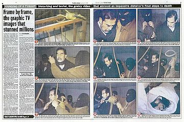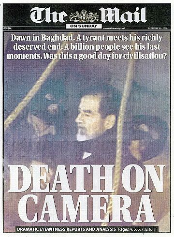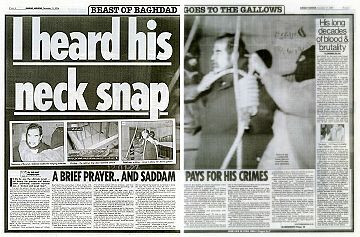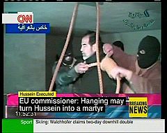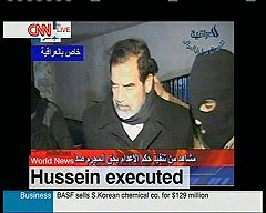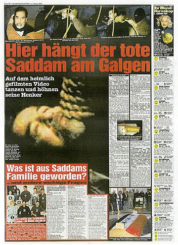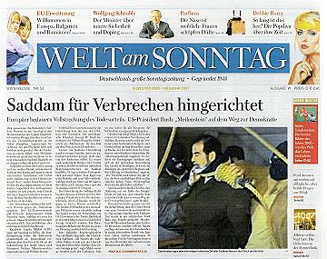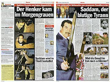 "Das Todesurteil gegen Saddam Hussein ist vollstreckt. Im Morgengrauen starb der irakische Ex-Diktator durch den Strang. Die EU-Kommission verurteilte die Hinrichtung als barbarisch, US-Präsident Bush sprach hingegen von einem Meilenstein auf dem Weg zu einem demokratischen Irak."