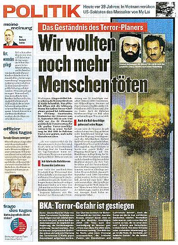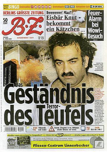 "Die amerikanische Darstellung ist falsch - 7 der 19 Attentäter haben nach dem 11. September noch gelebt" Andreas von Bülow (SPD), ehem. Bundesminister, in 'Oberhessische Presse' vom 5.4.2002 |
