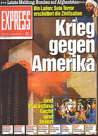 Noch am Tag der Tat steht der Täter fest Was uns über die Medien suggeriert werden soll - Ein Beispiel: 'Express' vom 12. September 2001 |