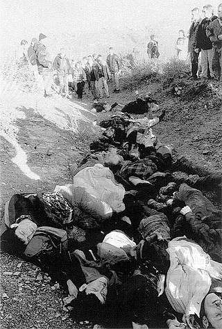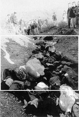 Etwa drei Monate zuvor hatte der 'Spiegel' das uns bekannte Bild von dem Ereignis veröffentlicht, das als "Das Massaker von Racak" bezeichnet wird. (9) Dieser Umstand und die Tatsache, daß es trotz der Flut von Desinformation Menschen gibt, die genauer hinsehen, wurde der 'taz' zum Verhängnis, auch wenn man schon sehr genau hinsehen muß, um zu erkennen, daß die "Toten von Djakovica" nicht die Toten von Djakovica sind. Aber der Vergleich der Bilder ergibt derart viele Übereinstimmungen in Form und Anordnung der Bildelemente, daß die Fälschung nicht zu vertuschen ist. Die 'taz' mußte die Fälschung eingestehen, ohne deshalb Einsicht zu zeigen: "Dadurch wird die Beschuldigung gegen die serbischen Einheiten wegen Massentötungen in Djakovica nicht hinfällig. Erst vorgestern berichteten wieder Flüchtlinge aus Djakovica dem UN-Flüchtlingswerk UNHCR von grausamen Vorkommnissen." ('taz', 7.5.1999) Was die 'taz' hier vornimmt, ist eine besonders eigenwillige Fälschung. Sie belegt ein Massaker mit Bildern eines anderen Massakers, und noch dazu ausgerechnet desjenigen Massakers, das die entscheidende kriegsauslösende Inszenierung war. Trotz des nachträglichen Eingeständnisses der Fälschung werden die Bilder zusammen mit den zahllosen anderen Bildern und Meldungen bei den Betrachtern und Lesern ihre Wirkung hinterlassen haben. Wir erinnern uns wieder an das Zitat: "Denn wir wissen genau: es ist die erste Behauptung, die wirklich zählt. Alle Dementis sind völlig unwirksam..." Nachträgliche Korrekturen sind ohne Bedeutung. Der Krieg ist geführt, das Ziel der erweiterten Einflußnahme auf dem Balkan ist erreicht. Unter den Augen der Besatzer hat die Vertreibung der serbischen Bevölkerung, der Roma und Juden aus dem Kosovo bis auf geringfügige Ausnahmen stattgefunden. Bilder von der ethnischen Säuberung, vom hundertfachen Mord an der serbischen Bevölkerung und ihrer Vertreibung aus dem Kosovo fehlen. Sie werden nicht benötigt. Sie passen nicht zur herrschenden Interessenlage.