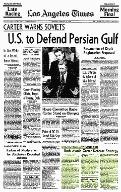 Interviewpartner ist Robert Scheer (Times Staff Writer). Der Titel des Artikels mit dem Interview lautet: "Bush greift Carters Sicherheitsstrategie an". Hier die entscheidende Passage aus dem Interview: