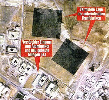 Bildlegende: "Heimlich ausgebaut: Die iranische Atomanlage Natanz (Satellitenfoto). Geheimdienste vermuten hier unterirdische Fabriken zur Anreicherung von waffenfähigem Uran"