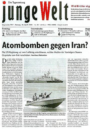 Wer nicht mitspielt, ist Antisemit Wie die 'taz' den Planungen der USA für einen Atomkrieg gegen den Iran begegnet, 22.4.2006 |
