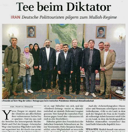 Beispielhafter Christ Eindrücke und Erkenntnisse von einer Reise in den Iran - Teil 4 - von Anneliese Fikentscher und Andreas Neumann - 16.05.2012 - veröffentlicht auch in der NRhZ Am Freitag, dem 27. April 2012, wurde eine Reisegruppe aus Deutschland von Mahmud Ahmadinedschad, dem Staatspräsidenten des Iran, empfangen – darunter auch die beiden Autoren dieses Artikels. Über dieses Ereignis wurde in den iranischen Medien berichtet. Und in Deutschland war der Empfang Auslöser für große Teile der Medien, sich eingehend mit der Iran-Reise zu befassen. Ohne den Empfang wäre das sicher so nicht geschehen. Hauptsächliches Ziel der Medienanstrengungen war die Diskreditierung der Reise und ihrer Teilnehmer, die das Feindbild Iran bzw. Ahmadinedschad ins Wanken zu bringen drohten.