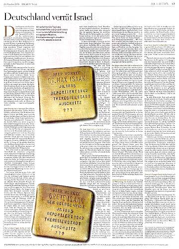 Wolf Biermann und 'Die Zeit' mißbrauchen Stolpersteinkünstler Gunter Demnig Betrachtungen zu einem Artikel in der 'Zeit' vom 26. Oktober 2006 Eine Mauer ist keine Mauer. Das ist ein Ergebnis neuen Denkens, eines Denkens, wie es George Orwells '1984' alle Ehre macht, eines Denkens, das uns dieser Tage von Wolf Biermann und der 'Zeit' vermittelt werden soll. So wie es in Zusammenhang mit Kriegen und Terroranschlägen wertvolle und wertlose Opfer gibt, so gibt es Mauern, die Mauern sind, und Mauern, die keine sind - je nach Zusammenhang. In der Wochenzeitung 'Die Zeit' (Ausgabe vom 26.10.2006) lesen wir in einem Artikel mit dem Titel 'Deutschland verrät Israel' folgendes: "In Deutschland lieben es die Meinungsmacher, den Zaun, mit dem sich Israel schützt, in Erinnerung an das geteilte Deutschland gehässig eine Mauer zu nennen. Ich lebte lange genug hinter der Berliner Mauer und weiß, wie zynisch diese Gleichsetzung ist." Diese Sätze stammen aus einer Rede, die Wolf Biermann im Oktober 2006 im Rahmen einer Gastvorlesung in Jerusalem und Haifa vortrug. Und 'Die Zeit' hat diese Auslassungen der Veröffentlichung für würdig befunden.