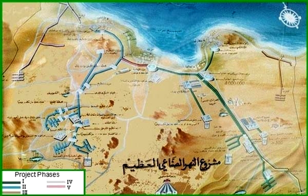 Libyen verfügt über gigantische Wasserreserven und hat die Einnahmen aus dem Öl- und Gas-Geschäft in ein Projekt investiert, das als das achte Weltwunder bezeichnet wird. Es geht um Süßwasserressourcen tief unter der Wüste. Sie haben nach bisherigen Erkenntnissen ein Volumen von ca. 35.000 Kubikkilometern. Das entspricht einem Wasserbecken von der Größe Deutschlands mit einer Tiefe von 100 Metern. Und dieses Wasser hat - wenn man von einem Preis von 2 Euro pro Kubikmeter Wasser ausgeht - einen Wert von Zig Billionen Euro. Die Kosten für die Bereitstellung von einem Kubikmeter Wasser liegen bei nur 35 Cent (für die Gewinnung aus Meerwasser werden dagegen 3,75 Dollar angegeben). Das Wasser reicht für die Versorgung der libyschen Bevölkerung und ihrer Landwirtschaft für mindestens 50 Jahre - wenn nicht noch wesentlich länger. Die Realisierung des fast unvorstellbaren Projekts begann in den 1980er Jahren und ist nach 30jähriger Bauzeit an einem Punkt angekommen, daß sie die erhofften Früchte bringen und zu einer regelrechten "grünen Revolution" führen könnte. [2] [3] [4] [5] [6] [7] Damit könnte sich Libyen selber mit Lebensmitteln versorgen, diese sogar exportieren - beträchtliche Teile von Afrika versorgen - und sich damit weitgehend befreien von den knebelnden Zwängen von Weltbank und Internationalem Währungsfond (IWF) - wenn es jetzt nicht das Opfer eines brutalen, international legitimierten Raubüberfalls würde. Gaddafi soll zu dem Wasser-Projekt gesagt haben, es sei "die größte Antwort auf die USA... die uns beschuldigen, an Terrorismus beteiligt zu sein". Es ist klar: Libyens und Gaddafis "Verbrechen" besteht darin, das Land nicht kostenlos preiszugeben. Die Kapitalverbrecher sitzen nicht in Tripolis. Die Kapitalverbrecher sind diejenigen, die Libyen angreifen lassen. Sie sitzen in den Machtzentralen des 'westlichen' Kapitals.
