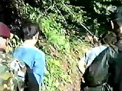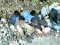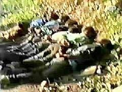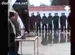 Anmerkung: Es ist zu bezweifeln, daß elf Uniformierte in der als Hinrichtung deklarierten Szene derart erkennbar sind, daß sie sich identifizieren lassen. Und die Anzahl der in der Hinrichtungsszene auftretenden Rot-Mützen ist geringer als elf - zumindest in den Teilen des Videos, die uns hier verfügbar sind. Oder ist es so, daß dadurch, daß die hier zu sehenden Personen in dem gleichen Video erscheinen wie die 'Hinrichtungsszene', sie zu Schuldigen werden? Dann wäre die Art der Beweisführung frappiernd: Man kombiniert Bilder einer Tat mit Bildern irgendwelcher Personen, und schon hätte man die Personen der Tat überführt. Nein, so geht das nicht. Die auf nebenstehendem Bild zu sehenden Personen müssen überhaupt nichts mit der 'Hinrichtungsszene' zu tun haben. |