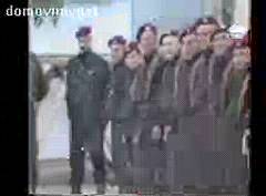 Anmerkung: Es handelt sich hier um eine durchgehende Video-Einstellung, die in einem Schwenk von links nach rechts über die aufgestellten Uniformierten führt. |