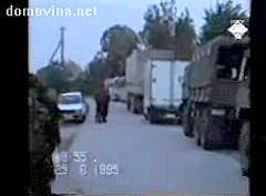 Anmerkung: Dieses Bild steht stellvertretend für eine längere Einstellung von einer Straße, auf der Militärfahrzeuge unterwegs sind. Wenn die eingeblendete Zeitangabe stimmt, stammt die Szene nicht aus der Zeit, wo bosnisch-serbische Truppen in Srebrenica anwesend waren. Die Szene hat keinen erkennbaren Bezug zu Srebrenica und legt nahe anzunehmen, daß das Video nicht in dem Zeitraum entstanden ist, in dem das so genannte 'Massaker von Srebrenica' stattgefunden haben soll (12. bis 18. Juli 1995) - zumindest nicht in seiner Gesamtheit. |