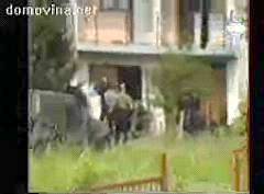 Anmerkung: In dieser Video-Sequenz sind keine Schüsse oder dergleichen zu hören. Lediglich am Beginn der letzten Einstellung (repräsentiert durch das unterste Bild) ist ein lauteres Geräusch zu hören, das von dem anfahrenden Fahrzeug stammen dürfte. |