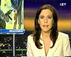 Betrachten wir zunächst einen Fernsehbeitrag mit dem Titel 'Video beweist Massaker' in der Nachrichtensendung '10 vor 10' im Schweizer Fernsehen SF1 vom 03.06.2005. Er wurde mit folgendem Text angekündigt: