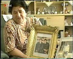| Sprecher: Die Frau zeigt Fotos ihres Sohnes, dessen Tod sie im Fernsehen mit ansehen mußte. Erstmals hatte das serbische Fernsehen am Mittwoch Abend [1.6.2005] Bilder von den Massakern in Srebrenica ausgestrahlt.