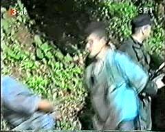 - "The Serb paramilitaries prodded the six skinny young Bosnian Muslims - their hands tied behind their backs - through the tall green grass, and then shot them one by one. The bodies slumped to the ground. -- Die serbischen Paramilitärs stießen die sechs mageren jungen bosnischen Muslims - ihre Hände hinter ihrem Rücken zusammengebunden - durch das hohe grüne Gras und erschossen sie dann einen nach dem anderen. Die Körper sanken zu Boden." (ap, 3.6.2005)