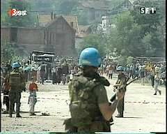 | Sprecher: Zur Erinnerung: Bosnisch serbische Soldaten drangen im Juli 1995 gegen das Ende des Bosnien-Krieges in die Moslem-Enklave Srebrenica ein. Die anwesenden UNO-Blauhelmsoldaten blieben untätig. |