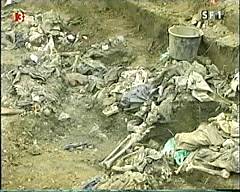 - "Zivilisten werden aus einem Lkw gestoßen. Sie müssen sich auf eine Wiese legen. Ein Soldat tritt mit dem schweren Stiefel gegen die Köpfe. Jemand lacht dabei... Die Opfer warten geduldig. Sie müssen sich einzeln umdrehen, dann schießt ihnen der Uniformierte in den Rücken. Die zwei Letzten aus der Gruppe müssen die Leichen auf einen Haufen legen, dann werden auch sie erschossen." (tagesschau.de, 7.6.2005, Susanne Glass, ARD-Hörfunkkorrespondentin, Wien)